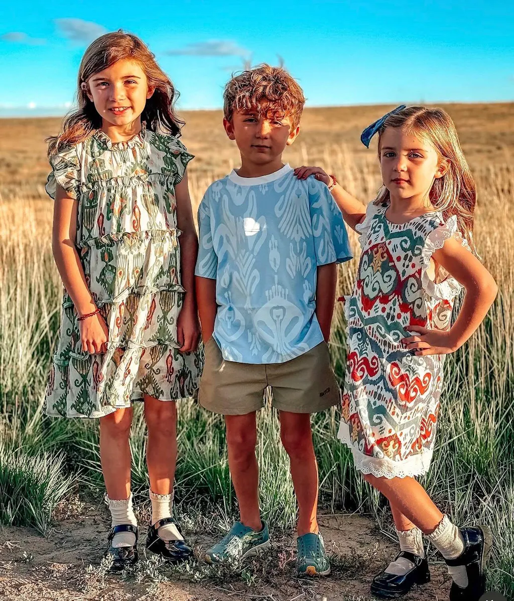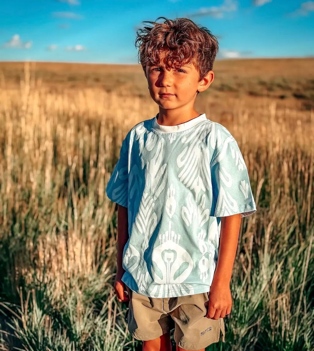 This kids Ikat cotton T-shirt is made from soft, breathable fabric that keeps your child cool and comfortable all day. Featuring a classic Atlas pattern and relaxed fit, it’s perfect for summer wear, everyday outfits, and active play.